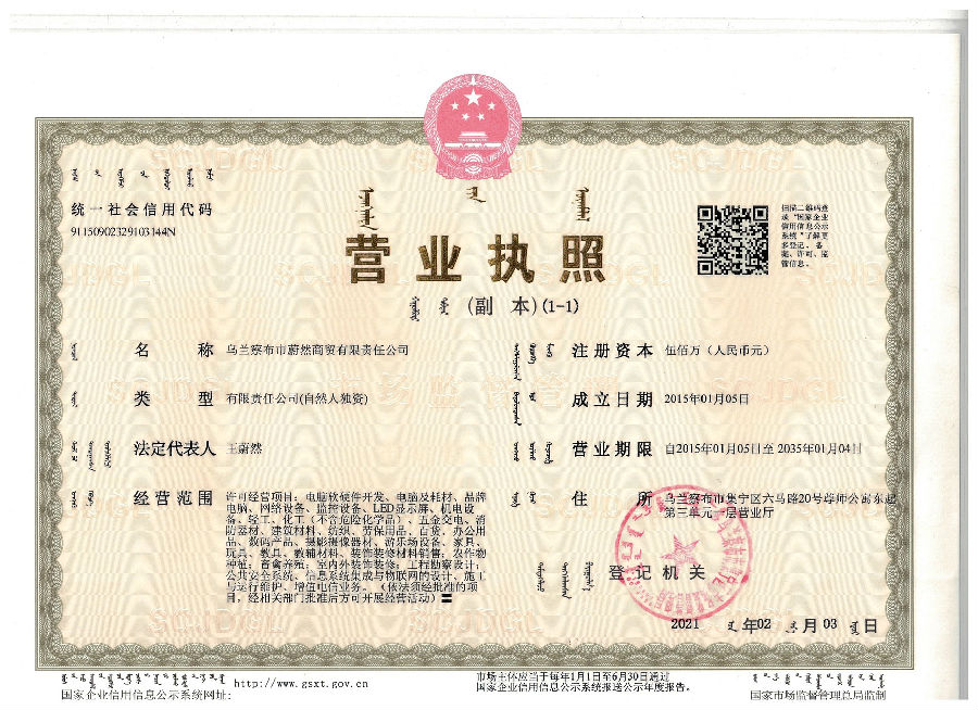 地址:內蒙古烏蘭察布市集寧區(qū)民建路83號宏大公司 綜合樓1層5號營業(yè)廳